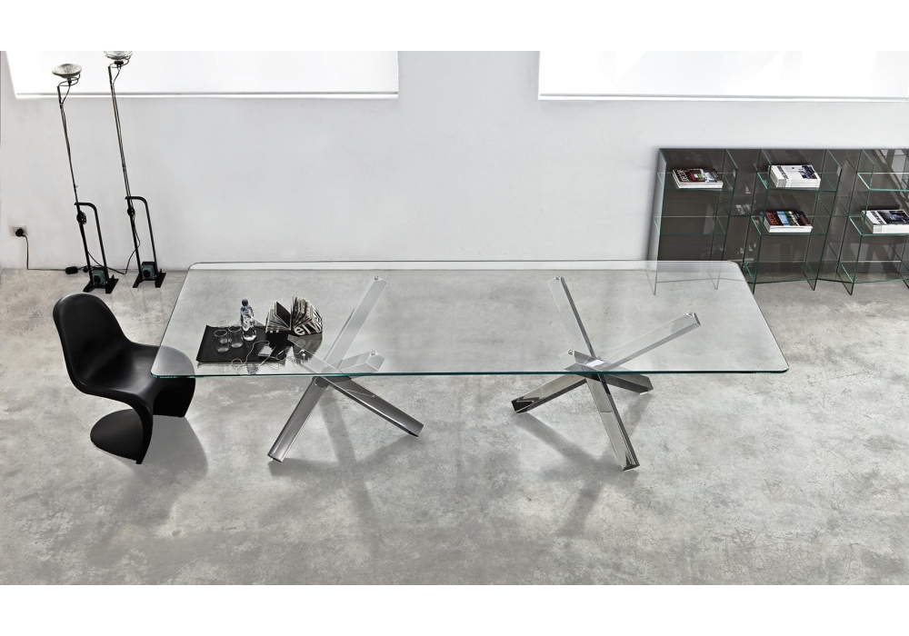Aikido Two Bases conçue par Studio Sovet pour Sovet est une table réalisée avec des bases en bois ou en métal et un plateau en verre ou en céramique. Disponible en différentes finitions et dimensions.