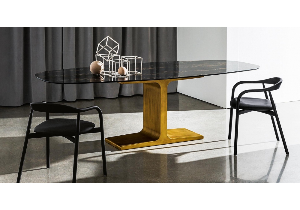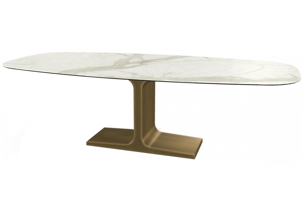 Palace conçu par Lievore, Altherr, Molina pour Sovet est une table de forme réalisée avec une base en métal et un plateau en verre ou en céramique. Disponible en différentes finitions et dimensions.