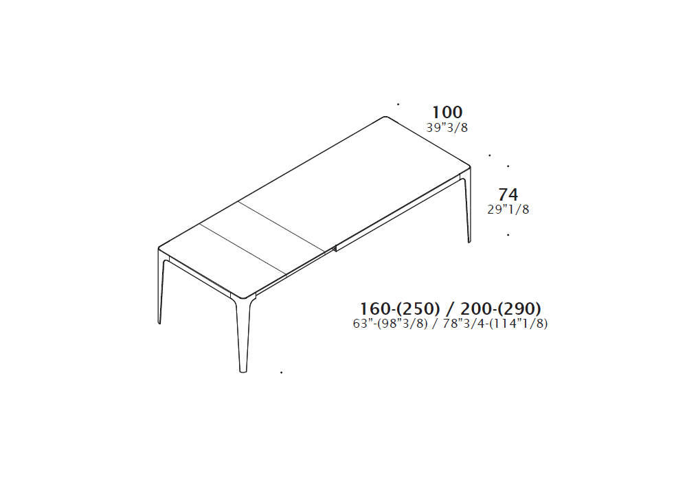 | Dimensions | • 180 x 100 x H 74 cm; • 200 x 100 x H 74 cm; • 240 x 100 x H 74 cm; • 280 x 100 x H 74 cm; • 120 x 120 x H 74 cm; • 140 x 140 x H 74 cm; • 160 x 160 x H 74 cm; • 160-250 x 100 x H 74 cm; • 200-290 x 100 x H 74 cm; • 90-130 x 90 x H 74 cm |