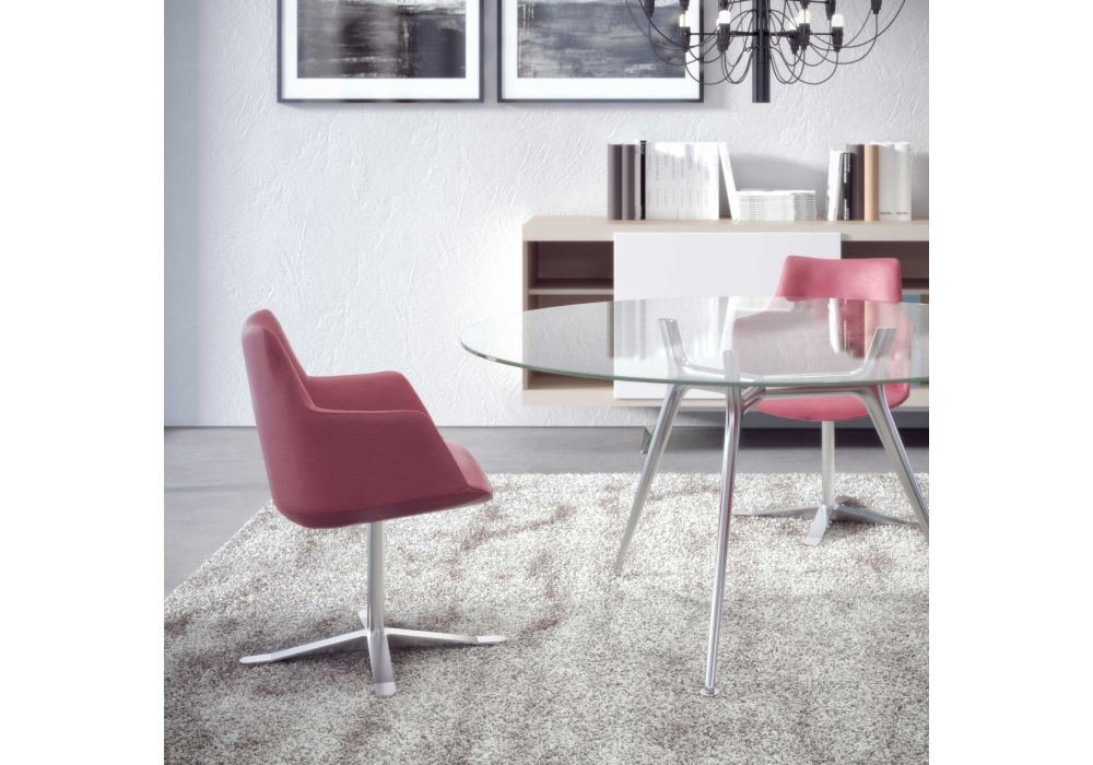 P016 conçue par Estel R&D pour Estel est une table avec structure en aluminium et plateau disponible en verre transparent, placage ou céramique.