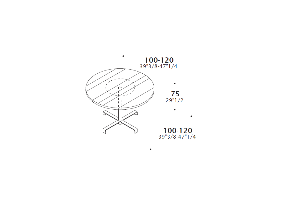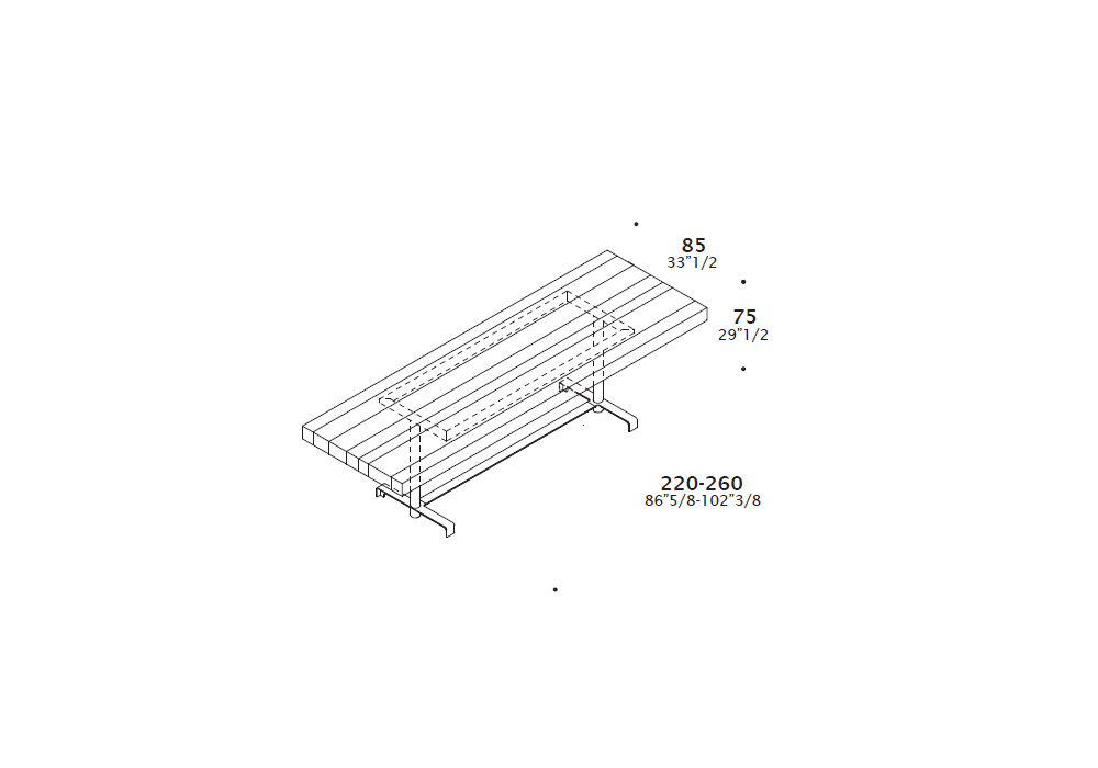 | Dimensions | • 220 x 85 x H 75 cm; • 260 x 85 x H 75 cm; • Ø 100 x H 75 cm; • Ø 120 x H 75 cm |