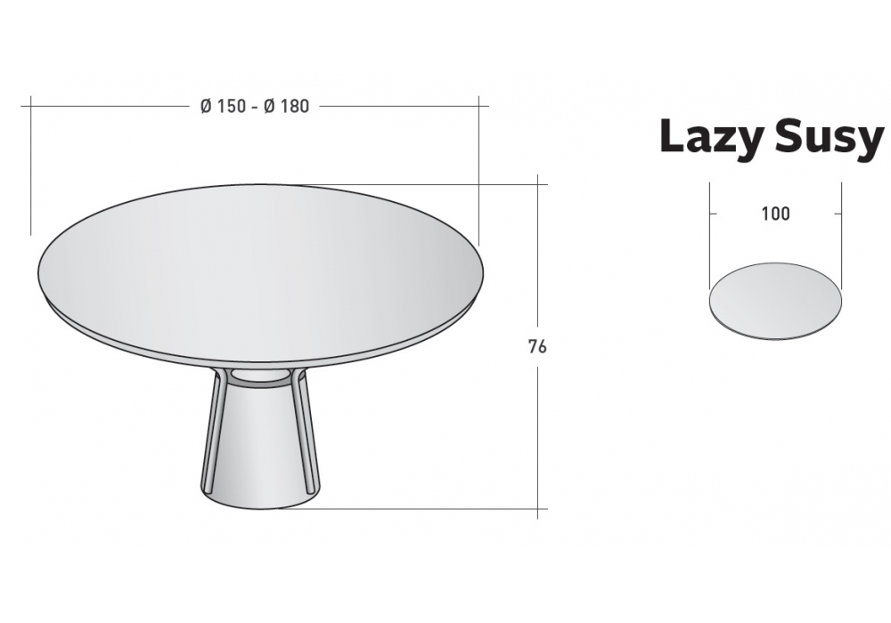 | Dimensions | - Ø 150 cm x H 76 cm; - Ø 180 cm x H 76 cm. |