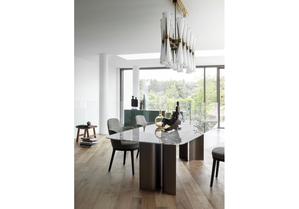 Gullwing conçue par Gabriele & Oscar Buratti pour Lema est une table réalisée avec une structure en métal laqué peint ou mat et un plateau en bois, marbre, grès cérame et avec des finitions en argile et marbre reconstitué. Disponible en différentes finitions et dimensions.