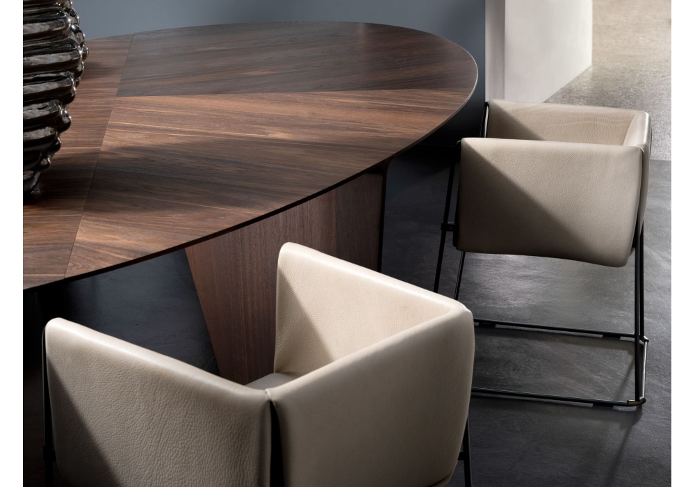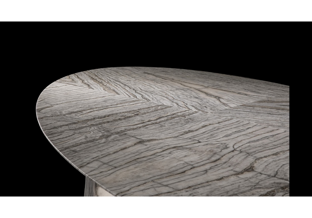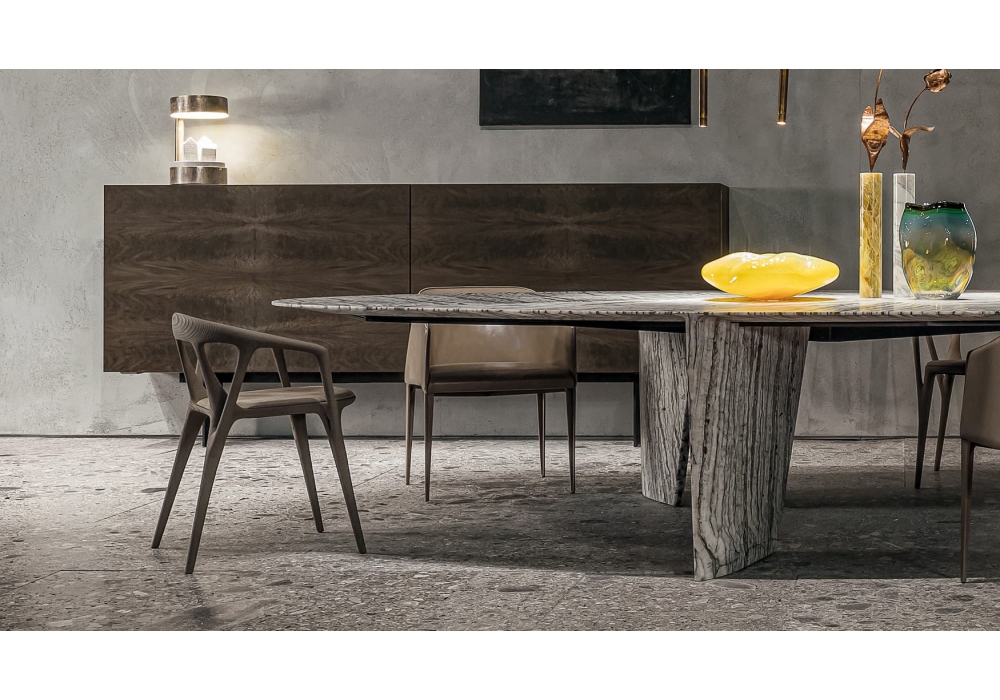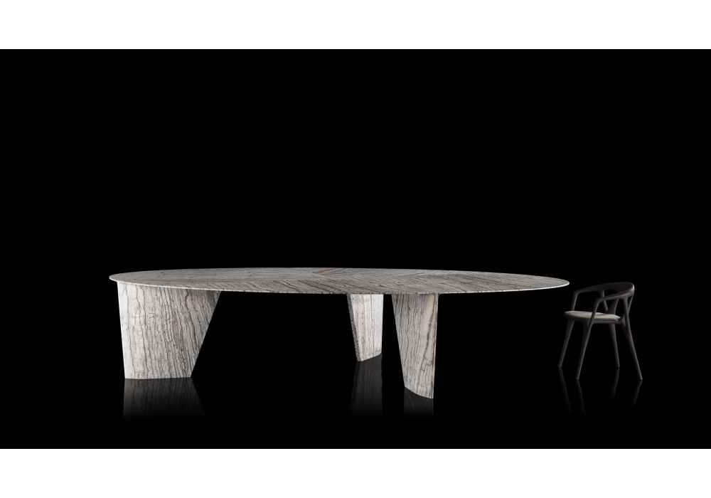 Synapse conçue par Massimo Castagna pour Henge est une table réalisée avec une structure tubulaire en acier peint en noir et un plateau et des pieds en pierre ou bois. Disponible en différentes finitions et dimensions.
