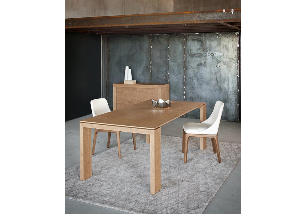 Atlante conçue par Riflessi est une table extensible en bois réalisée avec des pieds à chevalet et un mécanisme d'extension en aluminium anodisé. Disponible en différentes finitions et dimensions.