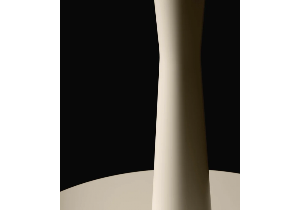 Flute conçue par Roberto Barbieri pour Poliform est une table ronde avec plateau disponible en panneau de fibre laqué mat/brillant, anti-rayures et base en tréfilé aluminium, laqué mat/brillant, anti-rayures ou verni.