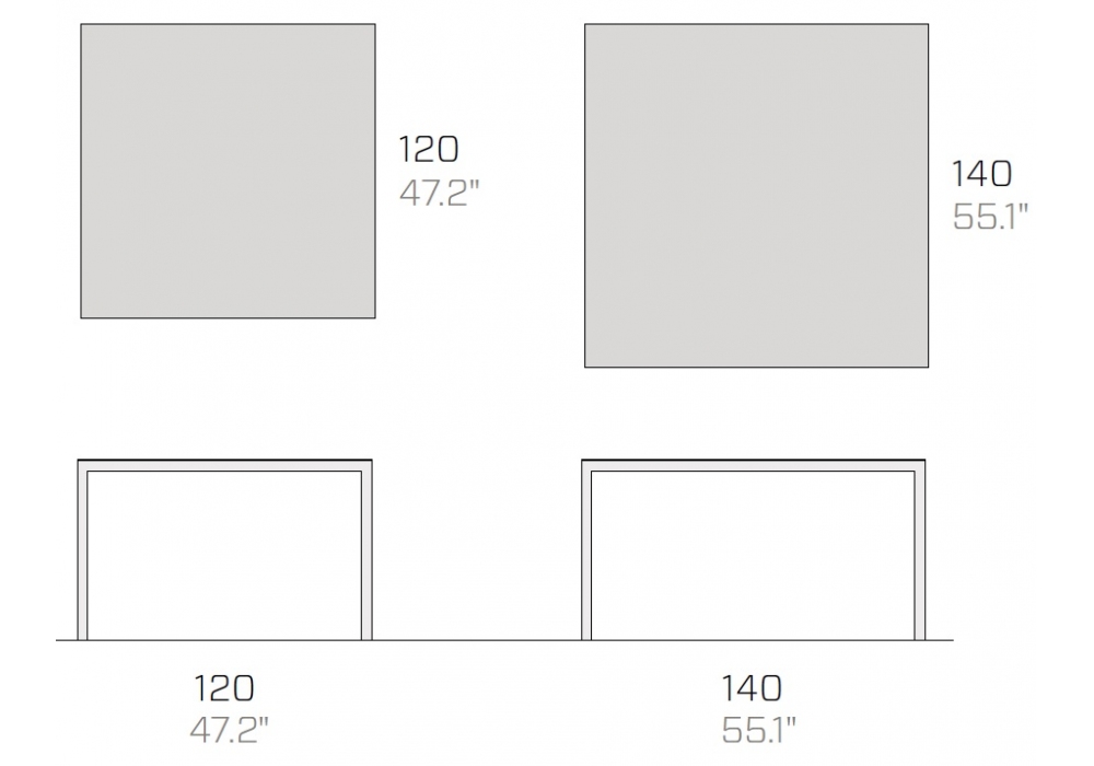 | Dimensions | • 120 x 120 x H 74,3 cm; • 140 x 140 x H 74,3 cm |