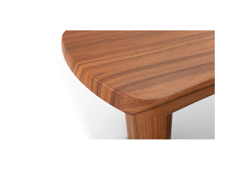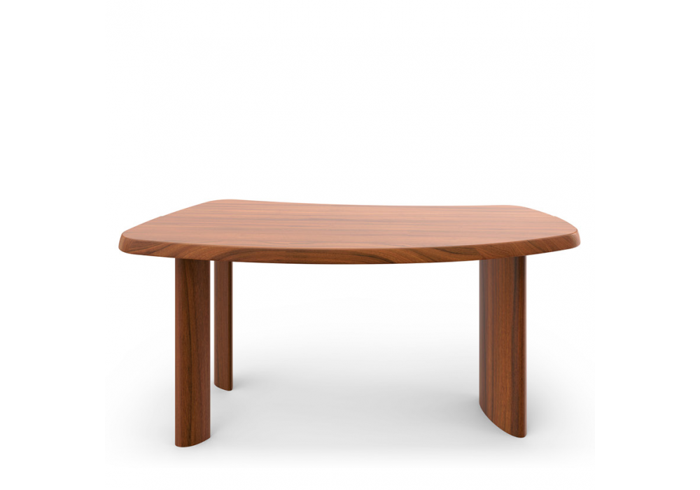 538 Petit Bureau En Forme Libre conçue par Charlotte Perriand pour Cassina est une table de forme libre en noyer canaletto massif ou acajou, ou en bois laqué mat. Tapis en cuir noir ou tabac. Disponible en différentes finitions.