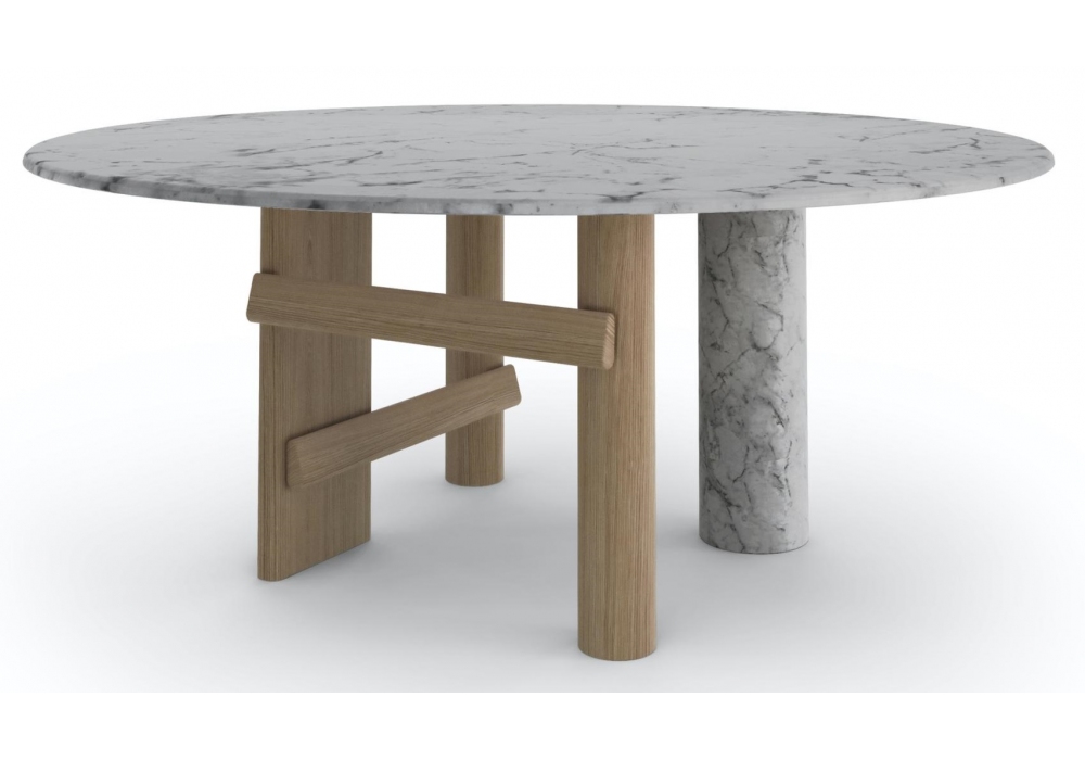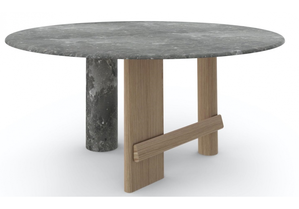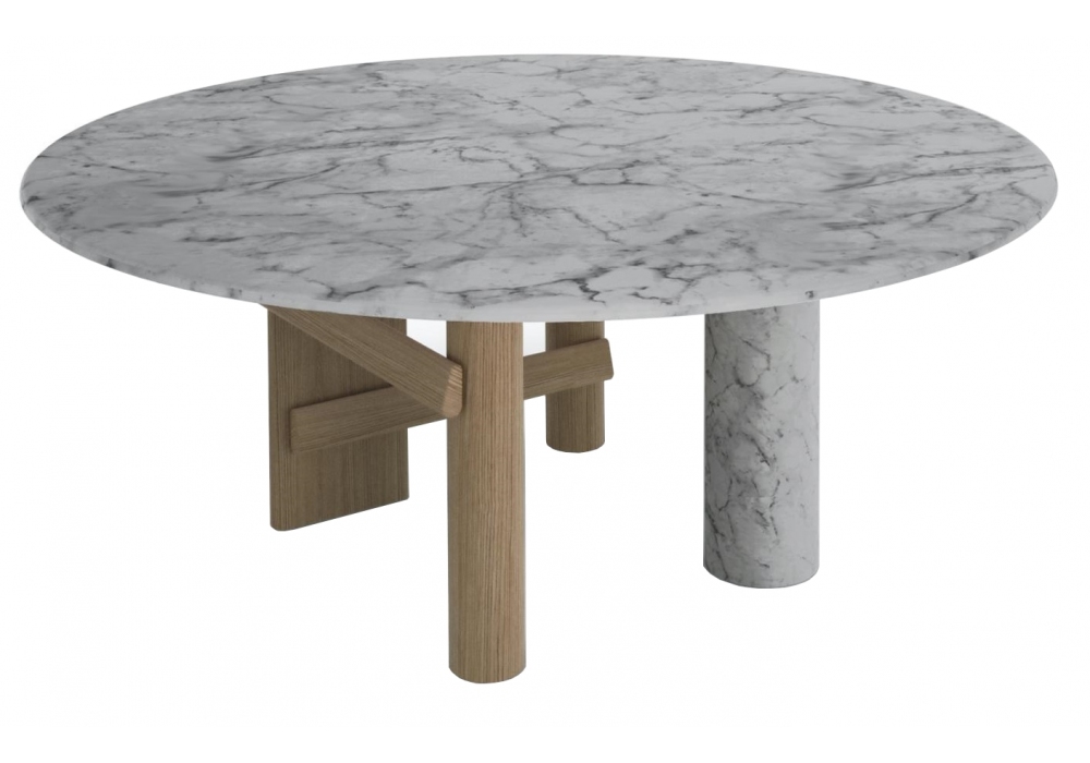 559 Sengu conçue par Patricia Urquiola pour Cassina est une table réalisée avec plateau et pied de colonne en marbre et pieds en bois. Disponible en différentes finitions et dimensions.