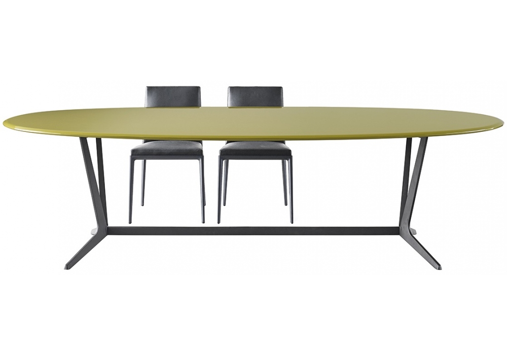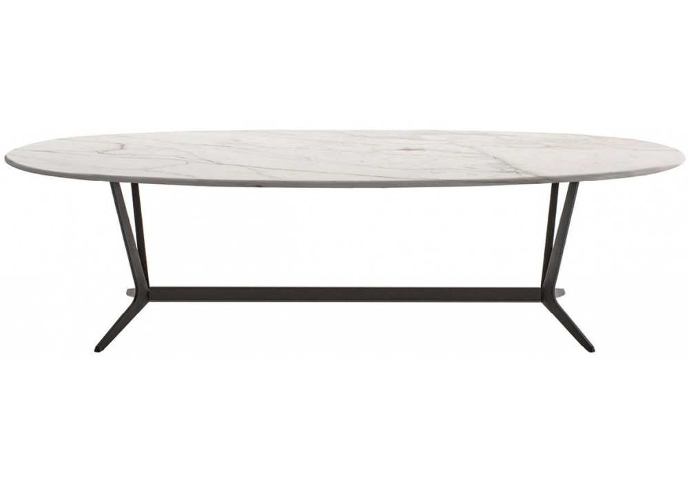Astrum conçue par Antonio Citterio pour Maxalto est une table avec plateau en bois ou en marbre. La structure de support est constituée d'un seul montant en aluminium moulé sous pression qui, selon la forme de la table, est composé de deux ou trois éléments pour former des tréteaux : deux éléments reliés par une traverse forment la base pour les tables rectangulaires, tandis que trois éléments reliés à la base par un anneau en acier forment le support pour les tables rondes. Disponible en différentes dimensions.
