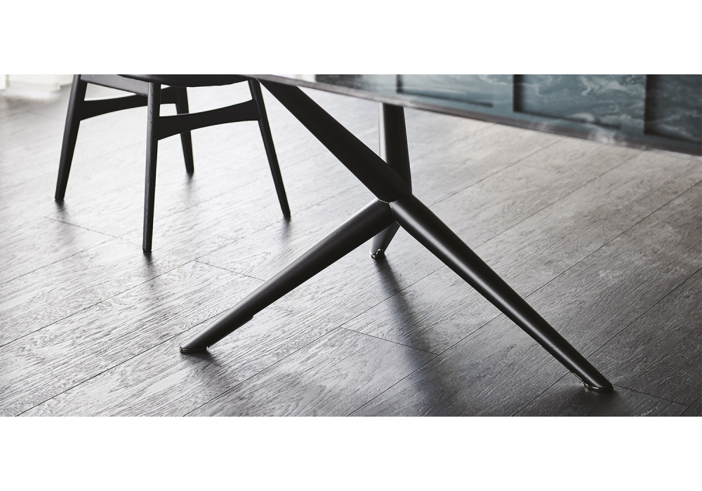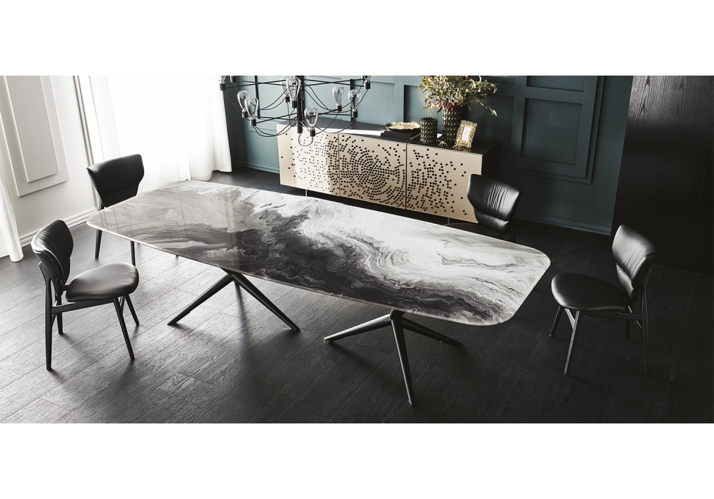 Atlantis Crystalart conçu par Paolo Cattelan pour Cattelan Italia est une table composée d'une base en acier laqué gaufré et de pieds en chrome noir. Plateau en verre extra clair biseauté avec impression décorative artistique en deux couleurs différentes. Disponible en plusieurs tailles.