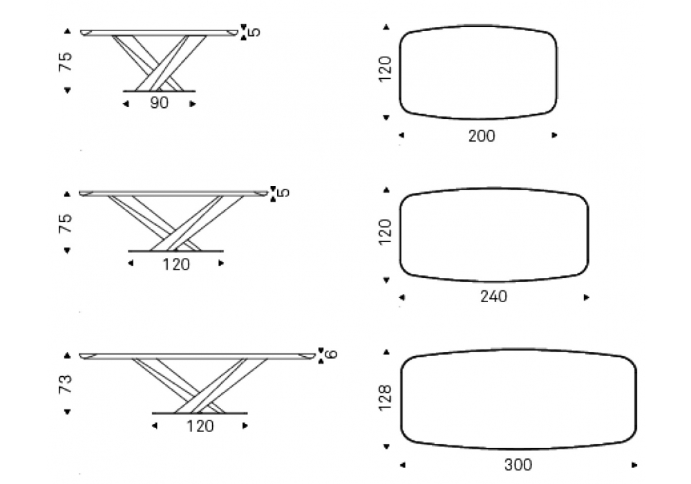 | Dimensions | 200 x 120 x H 75 cm; 240 x 120 x H 75 cm; 300 x 128 x H 73 cm |