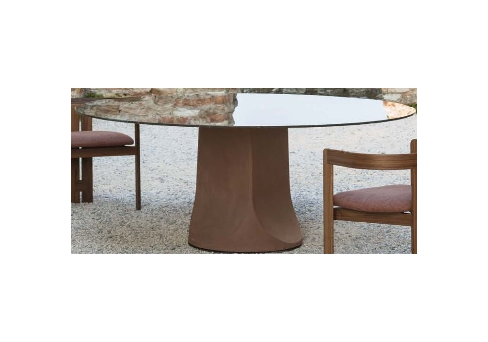 Togrul Large conçue par Gordon Guillaumier pour Tacchini est une table avec une base en polyuréthane rigide avec des finitions en argile, réalisée avec 100% de terre crue et truelle à la main par des maîtres artisans. Le plateau en marbre est disponible dans une version ronde, avec différentes finitions.