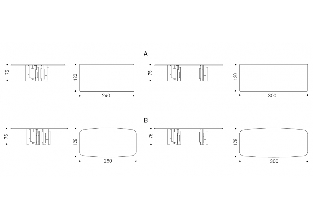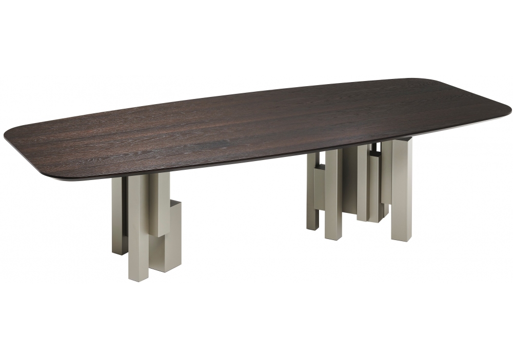 Skyline Wood conçu par BrogliatoTraverso pour Cattelan Italia est une table composée d'une base en acier laqué gaufré. Plateau en bois disponible dans les versions suivantes : à bords inclinés ou plateau en fût à bords inclinés.
