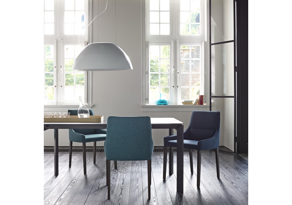 Frost conçue par Claudio Dondoli & Marco Pocci pour Ligne Roset est une table extensible avec plateau en panneaux de particules stratifiés ou en grès cérame anthracite métallisé. Extension toujours en panneaux stratifiés de panneaux de particules. Base en aluminium laqué anthracite satiné. Une deuxième extension, vendue séparément, peut être ajoutée si désirée.