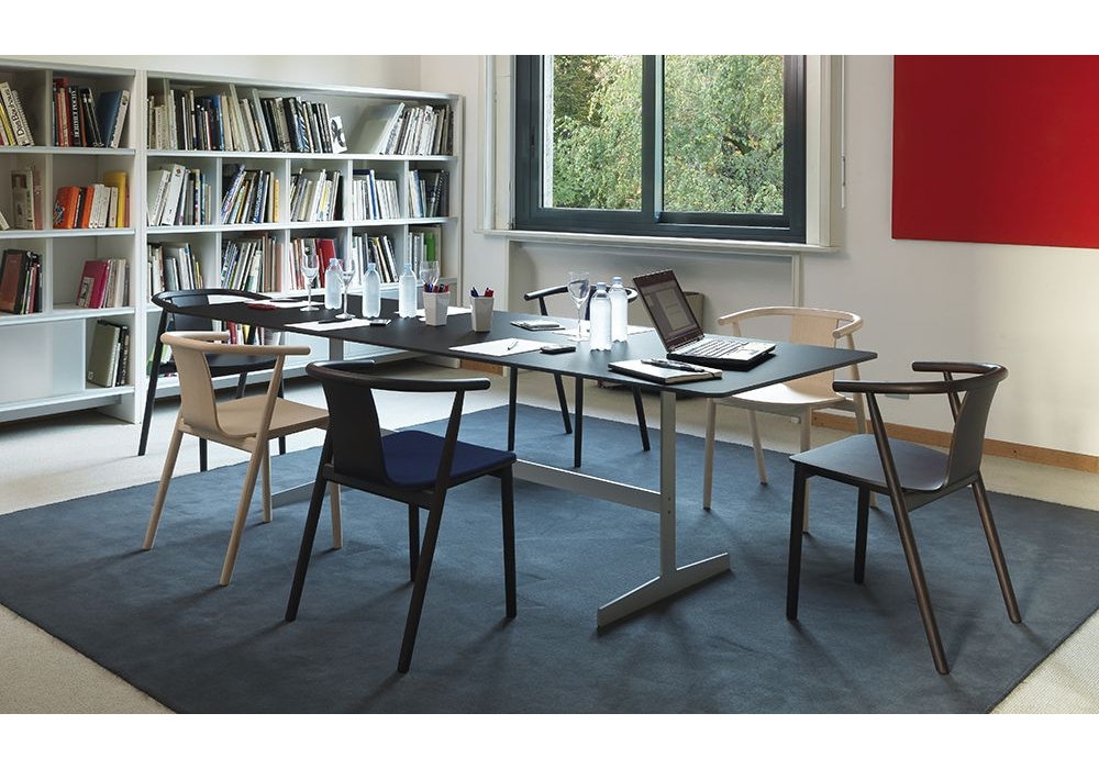 Simplon conçue par Jasper Morrison pour Cappellini est une table avec plateau en bois et base en aluminium anodisé. Disponible en différentes finitions et dimensions.