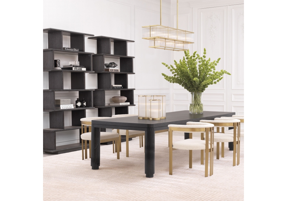Atelier conçue par Eichholtz est une table en placage de chêne gris anthracite et dotée d'un plateau et de pieds aux angles arrondis.