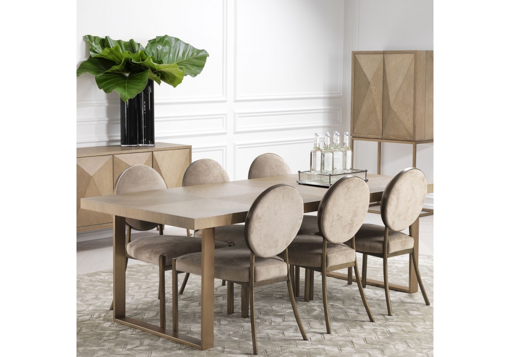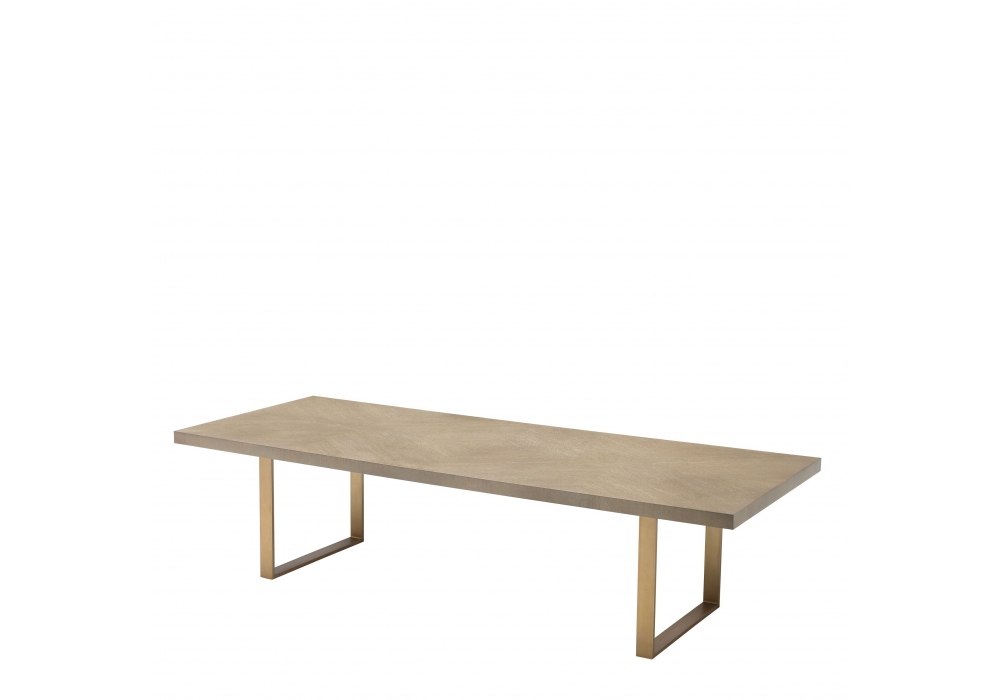 Remington conçue par Eichholtz est une table composée d'un plateau en placage de chêne lavé et d'un piètement en finition laiton brossé.