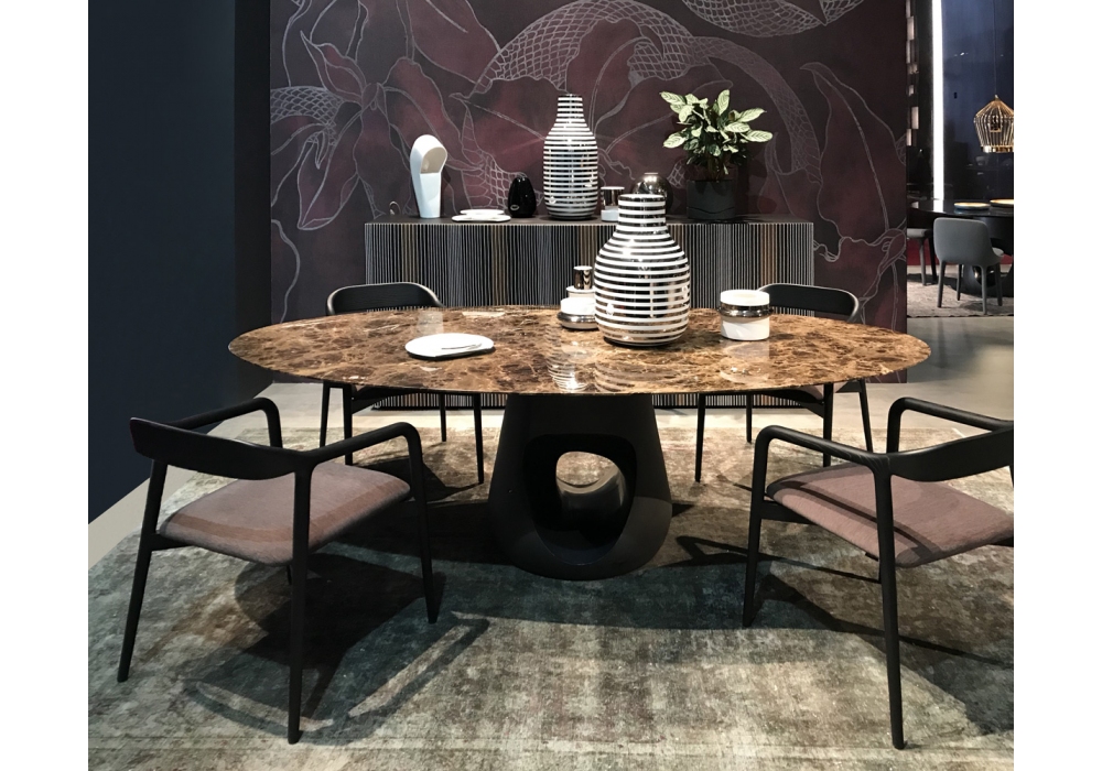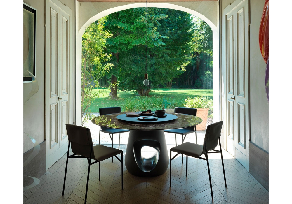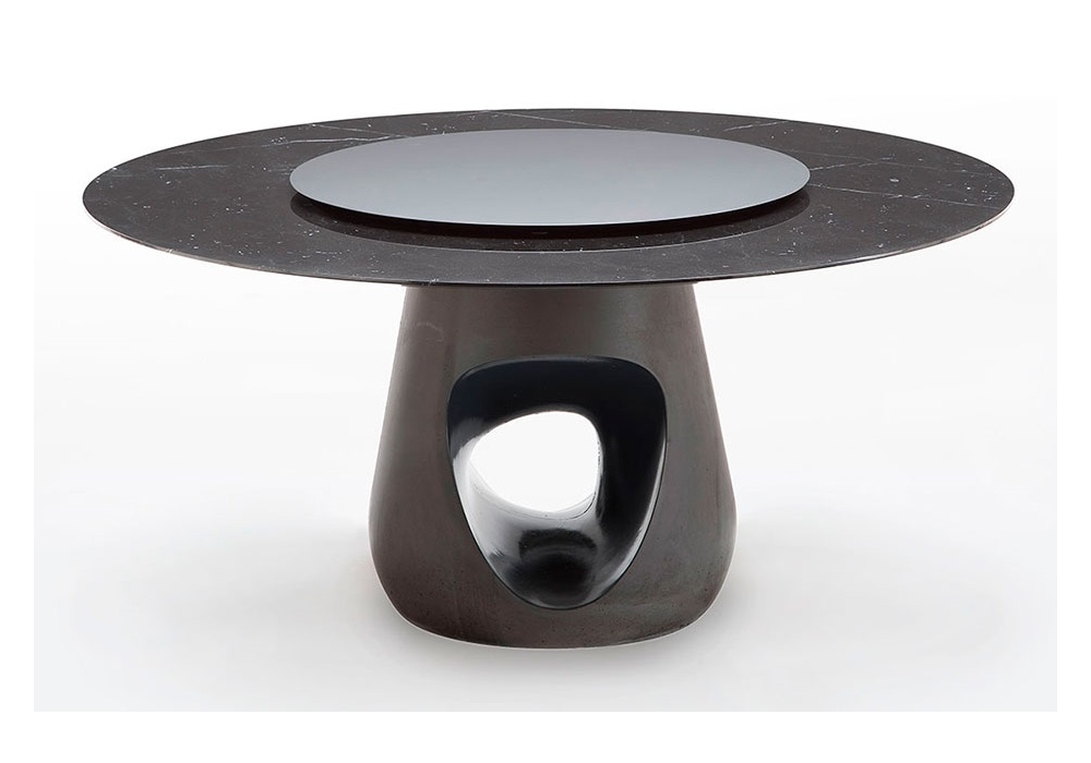 Barbara conçue par Renato Zamberlan pour Casamania & Horm est une table réalisée avec base en béton moulé et plateau en marbre ou Fenix ou MDF plaqué. Lazy Susan en Fenix noir. Disponible en différentes finitions et dimensions.