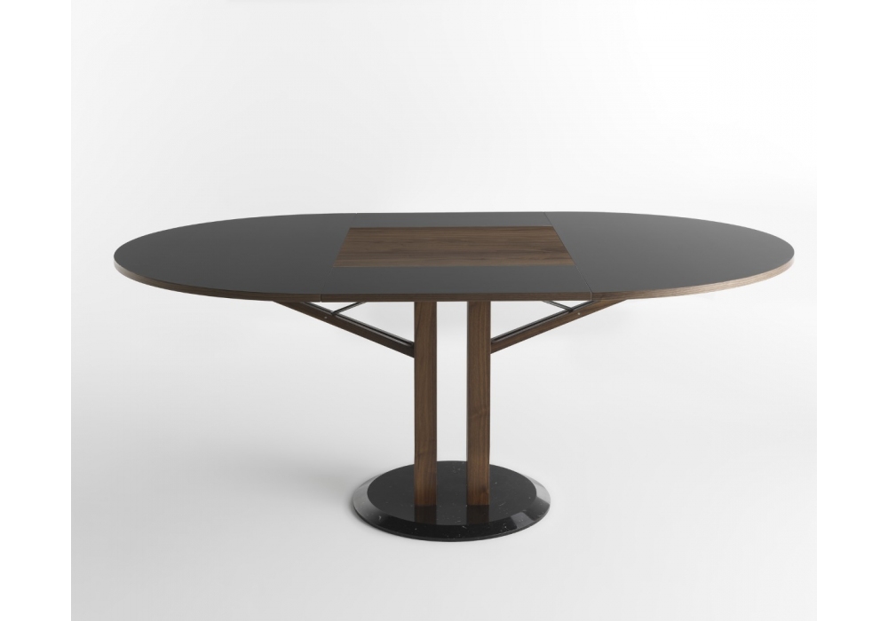 Flower conçue par D'Urbino Lomazzi pour Casamania & Horm est une table extensible avec plateau et rallonge réalisée avec des panneaux de particules plaqués en Fenix NTM © et bordés en noyer Canaletto. L'extension est plaquée en noyer canaletto dans la partie centrale. Pieds en noyer Canaletto massif. Socle en marbre. Disponible en 2 finitions.