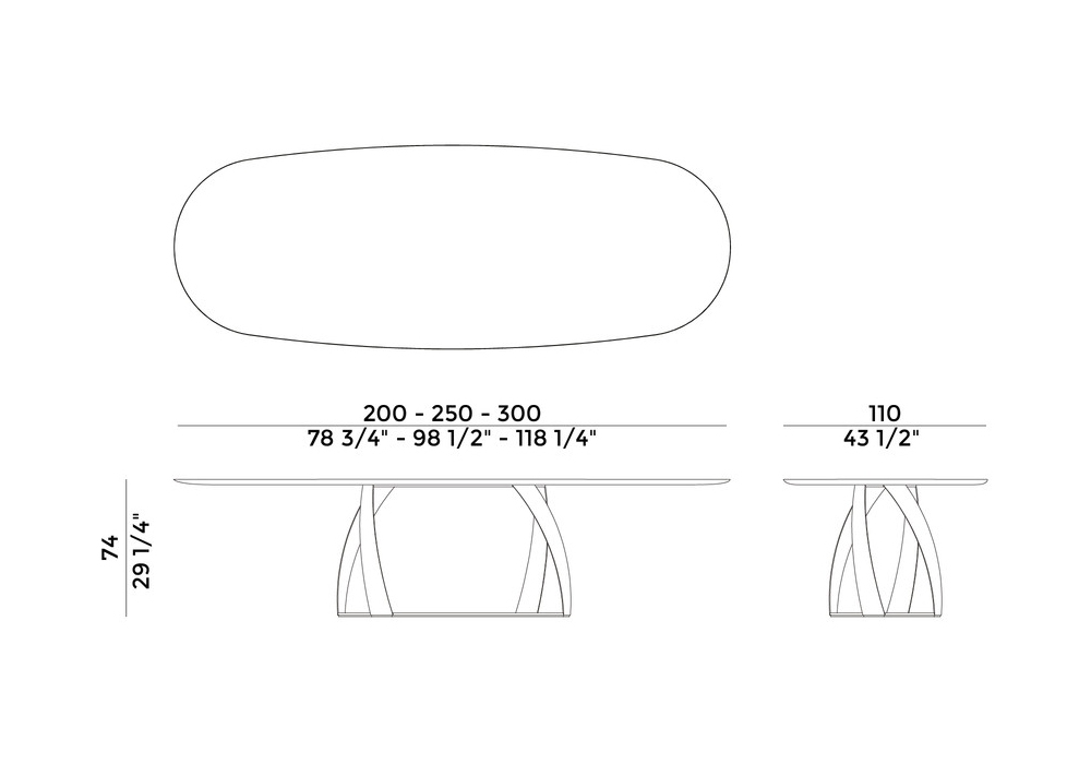 | Dimensions | 200 x 110 x H 74 cm; 250 x 110 x H 74 cm; 300 x 110 x H 74 cm. |