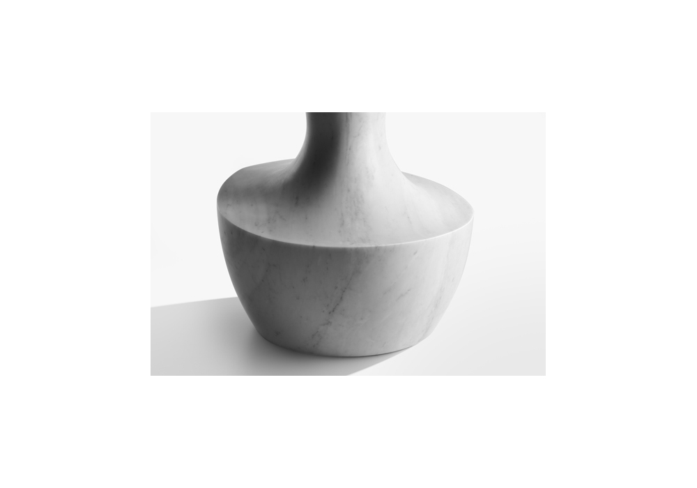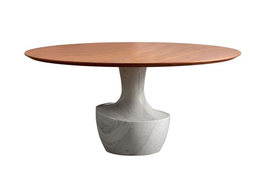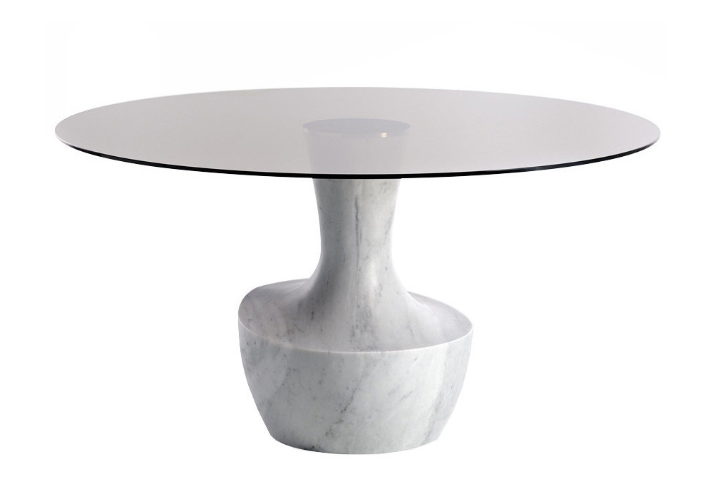 Anfora Marble conçue par Alexander Lorenz pour Potocco est une table avec base en marbre de Carrare blanc mat. Le plateau est de forme circulaire et est disponible en verre ou en noyer Canaletto en deux tailles différentes.