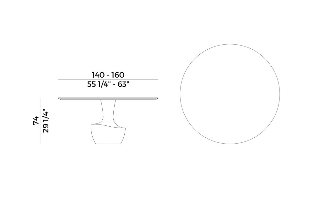 | Diamètre de plateau | Ø 140 cm; Ø 160 cm. |