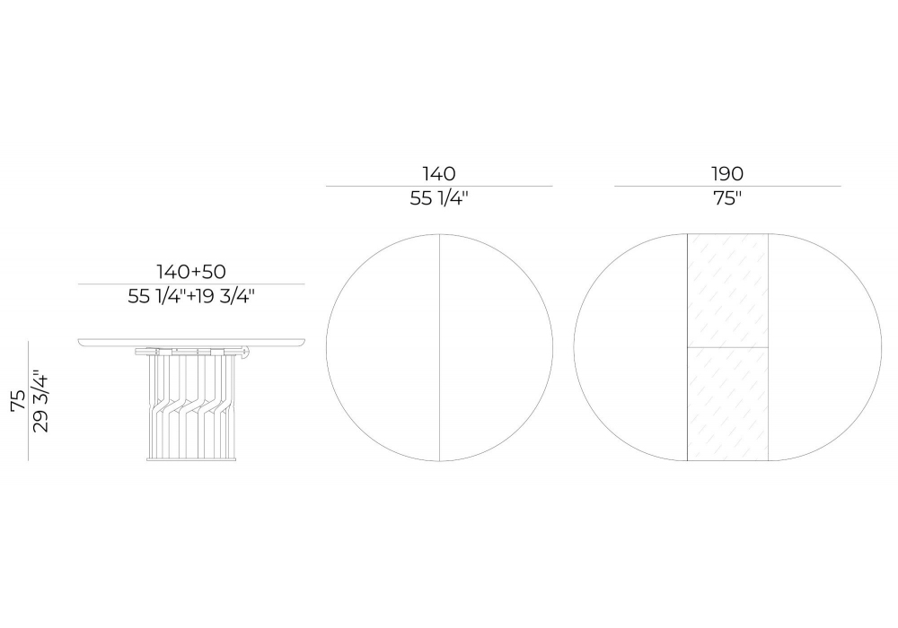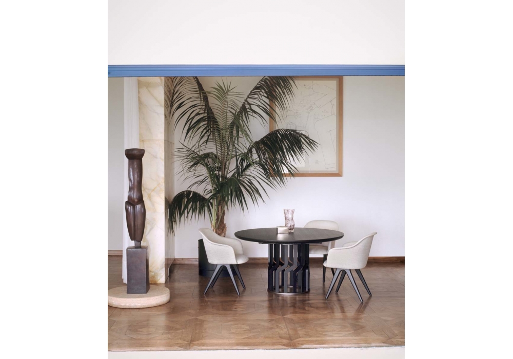 Intreccio TC1 conçue par Nava + Arosio pour Potocco est une table avec base circulaire entièrement structurée en bois de frêne massif en différentes finitions. Le plateau est de forme circulaire, extensible jusqu'à 190 cm de longueur.