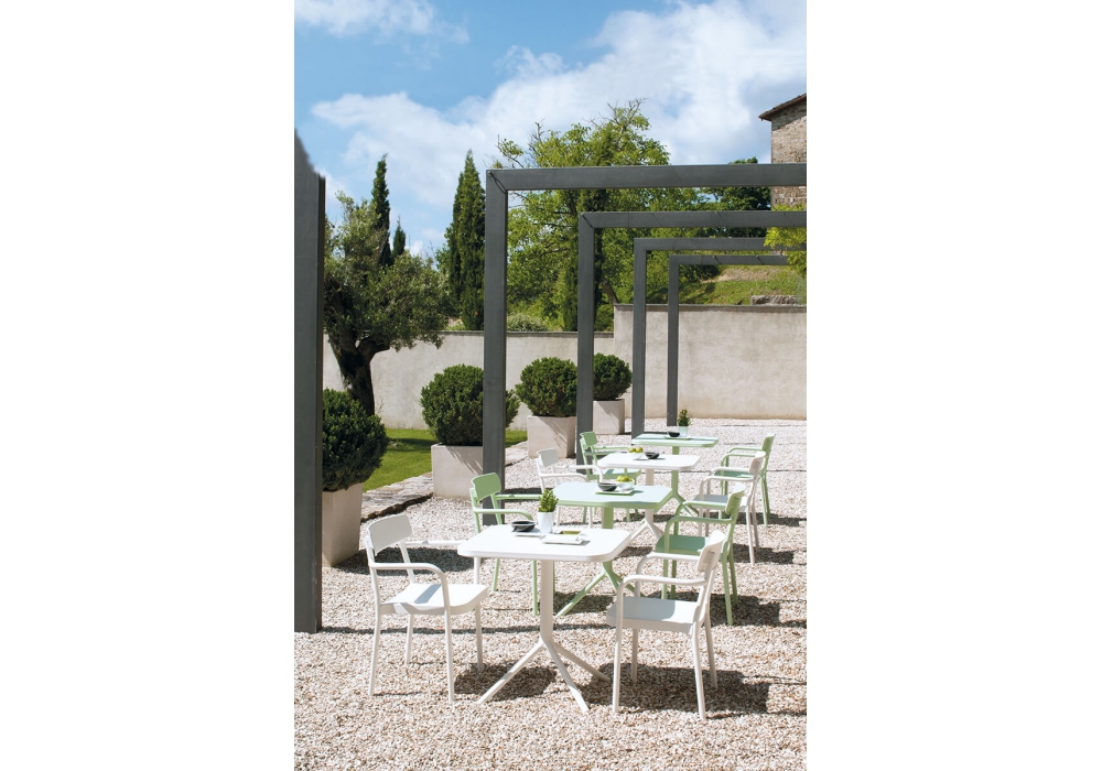 Grace conçue par Samuel Wilkinson pour EMU est une table pliante avec bordure carré en aluminium, elle se prête à diverses applications intérieures et extérieures, créant une atmosphère rétro particulière. Disponible en différentes tailles et finitions.