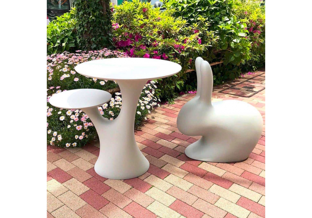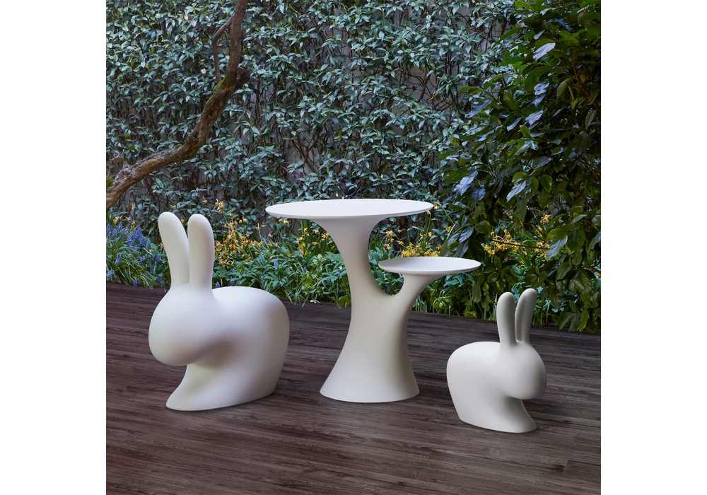 Rabbit Tree conçue par Stefano Giovannoni pour Qeeboo est une table de bistro entièrement réalisée en matière plastique disponible en différentes finitions.