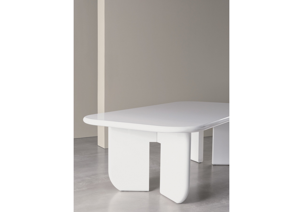 Italo conçue par Andrea Parisio pour Meridiani est une table en bois avec finition laquée mate ou brillante. Disponible en plusieurs dimensions.