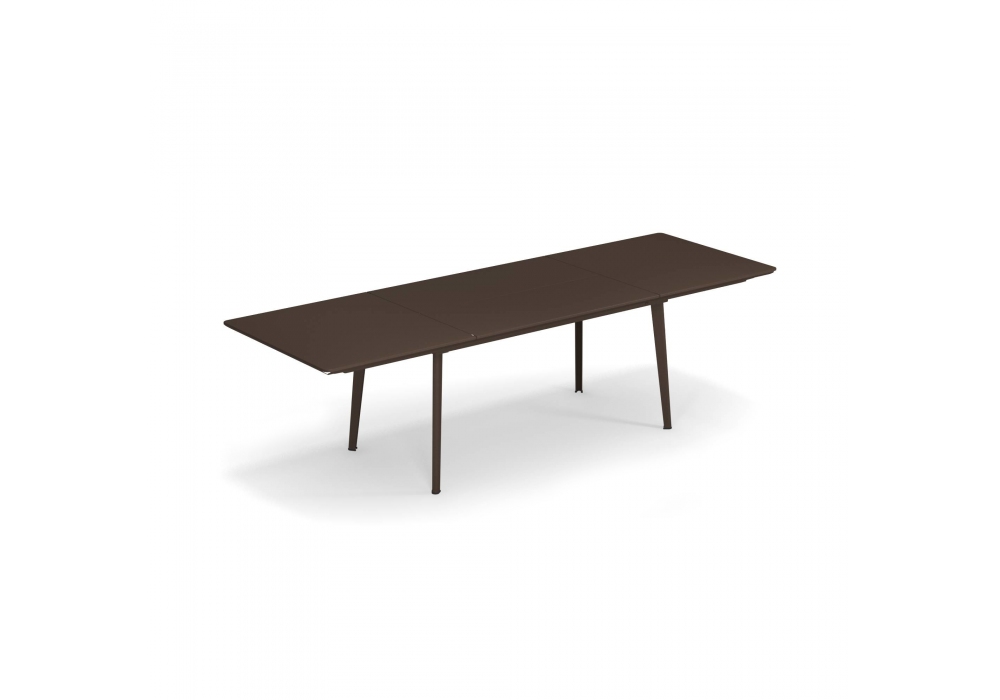 Plus4 conçue par EMU est une table de jardin extensible, le plateau est en acier courbé avec un traitement soigné des finitions pour un meilleur effet esthétique, Le mécanisme papillon de l'extension interne rend les opérations d'ouverture extrêmement pratiques. Disponible en différentes tailles et finitions.