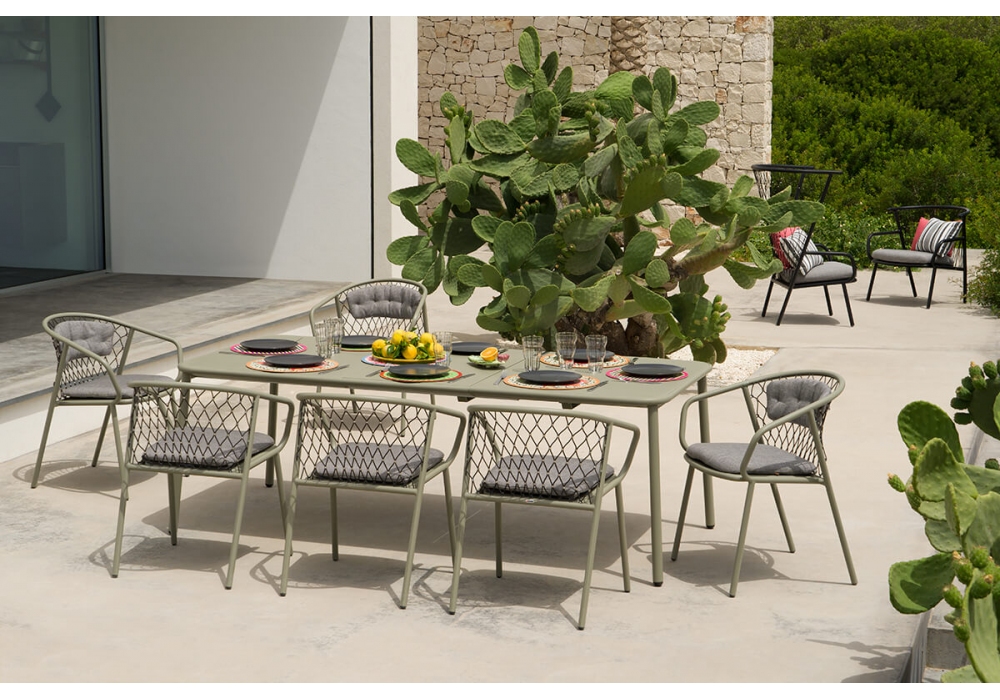 Yard conçue par Stefan Diez pour EMU est une table de jardin extensible, en aluminium, ses lignes simples et sophistiquées la rendent idéale pour les environnements contractuels et résidentiels, entièrement utilisable pour une utilisation en extérieur. Disponible en différentes finitions.