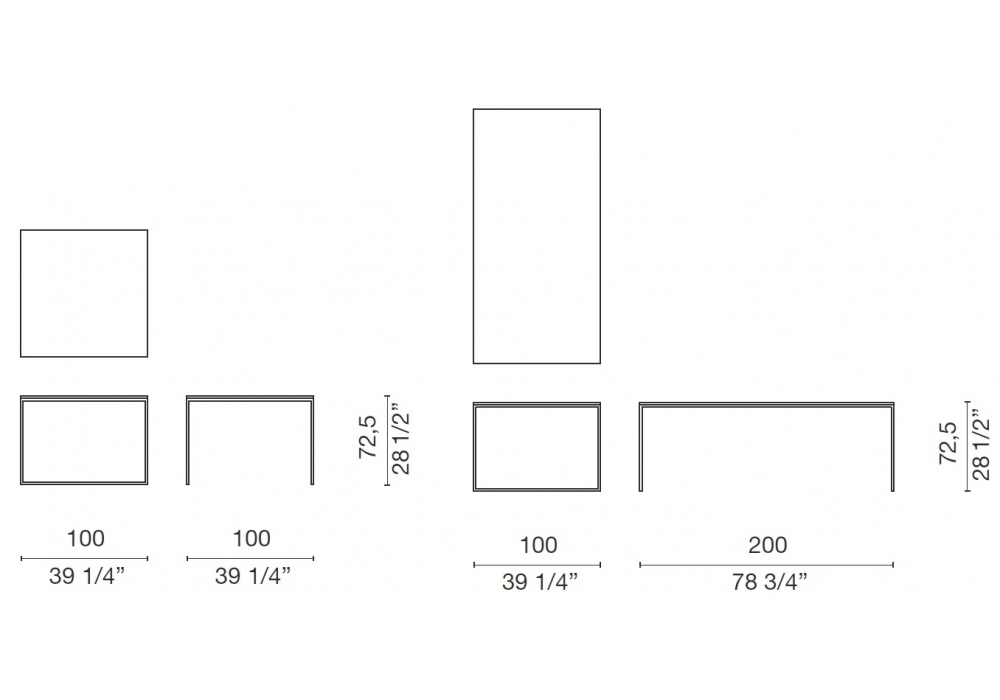 | Dimensions | 100 x 100 x H 72.5 cm; 200 x 100 x H 72.5 cm |