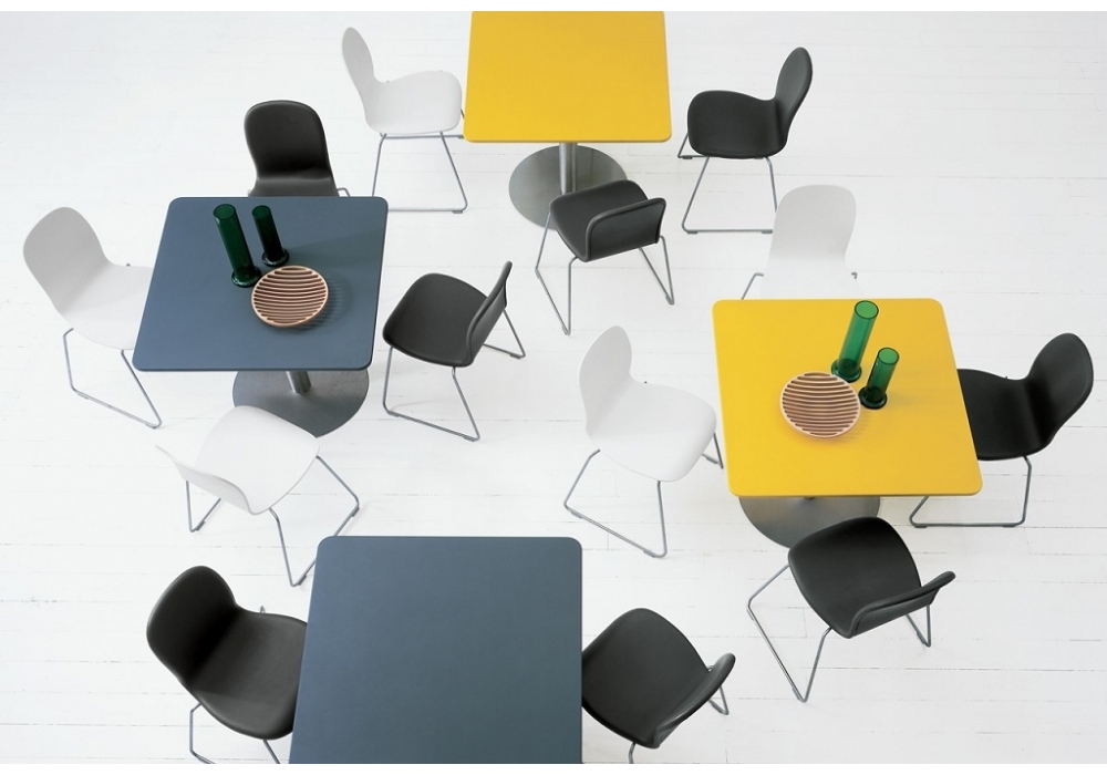 Break conçue par Giulio Cappellini pour Cappellini est une table avec base en métal et plateau rond ou carré. Disponible en différentes finitions et dimensions.