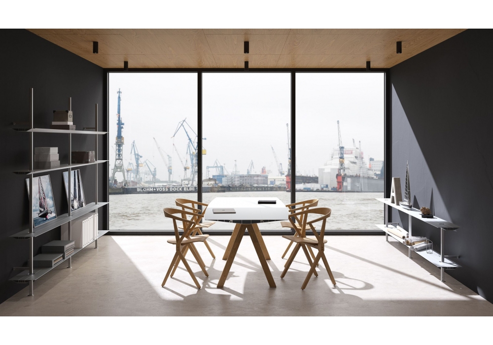 Table B 90 conçue par Konstantin Grcic pour BD Barcelona est une table en aluminium extrudé avec des extrémités ouvertes coupées à 45º. Possibilité de stratifier la surface en effet chêne naturel avec finition peinte. Disponible en différents modèles et tailles.