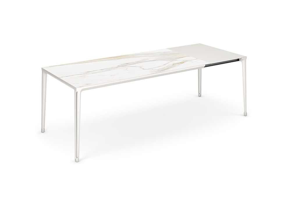 Boulevard Keramik Drive conçue par Archirivolto pour Cattelan Italia est une table à rallonges avec plateau en céramique Marmi et structure en aluminium laqué gaufré. Extension en bois lamellé-collé assortie à la structure. Disponible en plusieurs dimensions.
