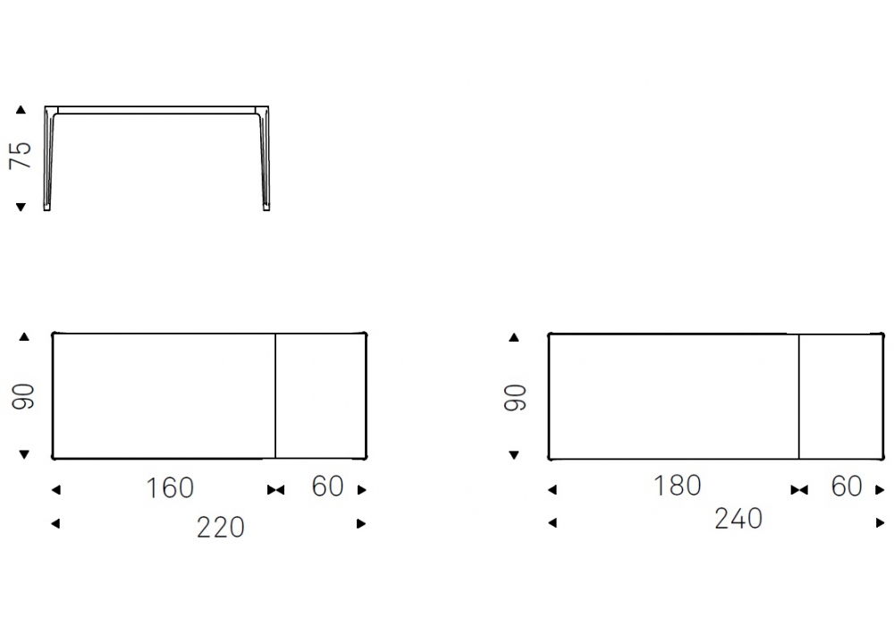 | Dimensions | 160-220 x 90 x H 75 cm; 180-240 x 90 x H 75 cm. |