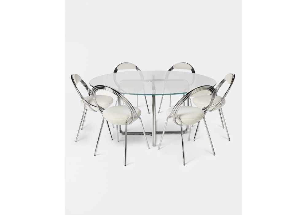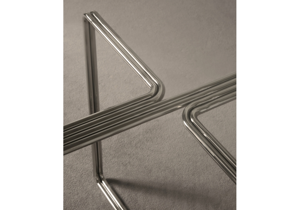 Musico produit et signé par Lee Broom est une table avec structure en acier tubulaire et plateau en verre disponible en différentes finitions.