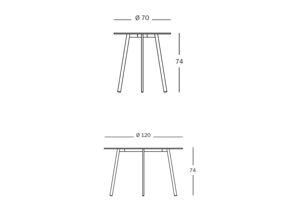 | Dimensions | Ø 70 x H 74 cm; Ø 120 x H 74 cm |
