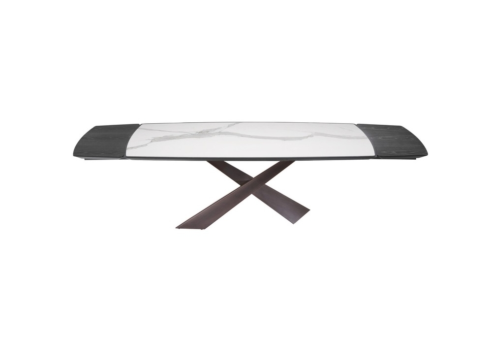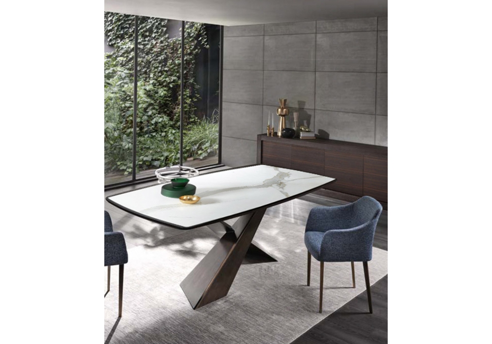 Living conçue par Riflessi est une table avec plateau en bois biseauté en chêne coke ou noyer canaletto thermo-traité avec insert en céramique. Base en aluminium peint. Disponible en différentes dimensions.
