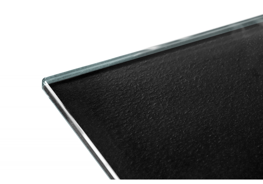 Agos conçue par Ludovica + Roberto Palomba pour Fiam est une table avec base en métal peint et plateau en bronze extralight fondu, trempé ou stratifié et bissellé ou en verre fumé.
