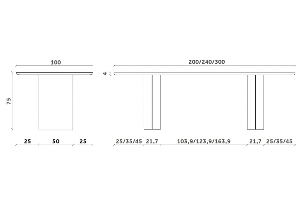 | Dimensions | • 200 x 100 x H 75 cm; • 240 x 100 x H 75 cm; • 300 x 100 x H 75 cm |