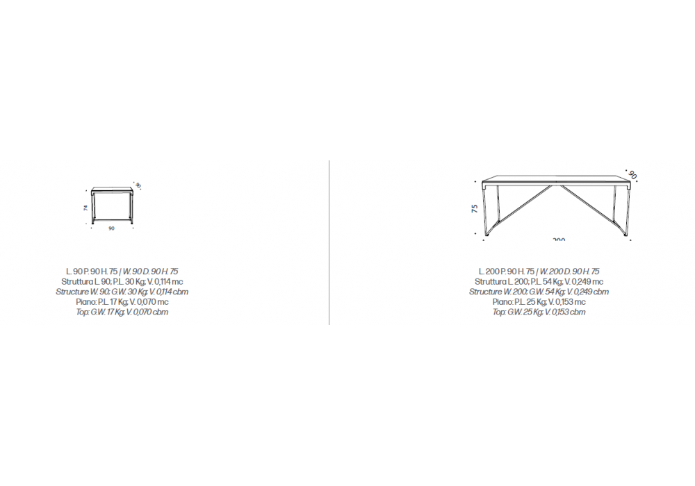 | Dimensions | - 90 x 90 x H 75 cm; - 200 x 90 x H 75 cm. |