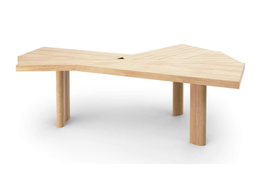 511 Ventaglio conçue par Charlotte Perriand pour Cassina est une table réalisée avec un plateau en aggloméré et panneau MDF plaqué chêne avec bords en chêne massif et pieds en bois massif.
