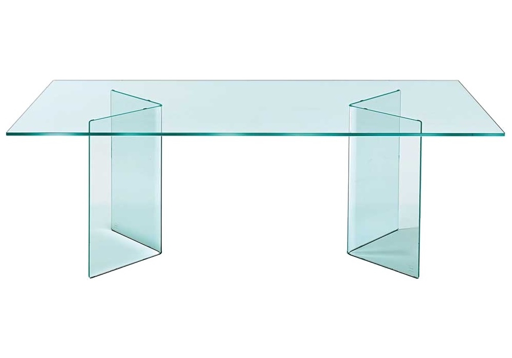 Corner conçue par CRS Fiam pour Fiam est une table réalisée avec un plateau en verre trempé de 15 mm et des bases en verre courbé de 12 mm (côtés 45 cm). Disponible en différentes dimensions.