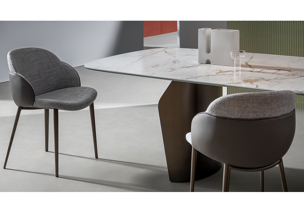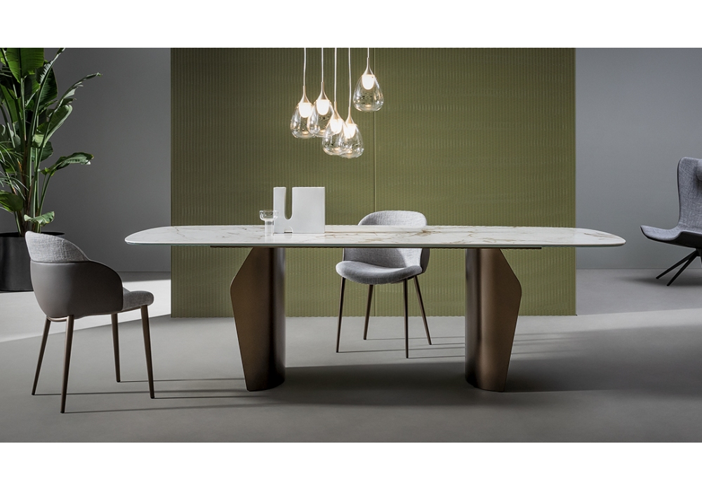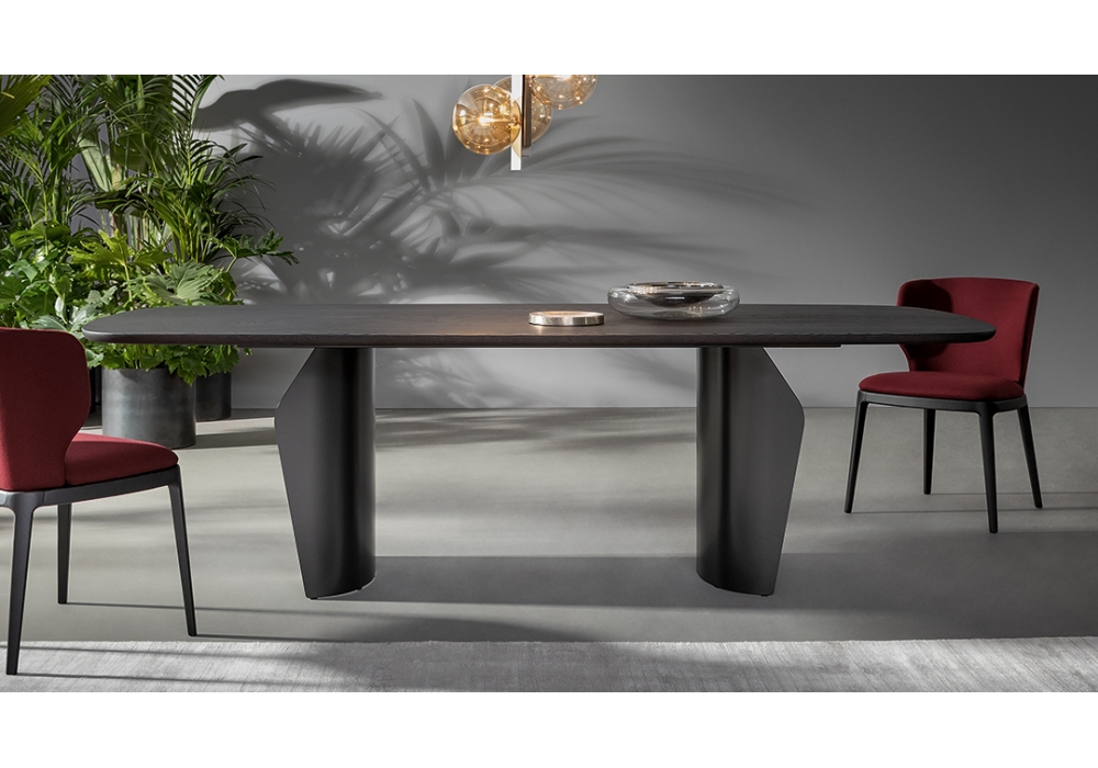 Flame conçue par Gino Carollo pour Bonaldo est une table avec base en métal peint en différentes finitions et plateau en divers matériaux. Disponible en 2 tailles.