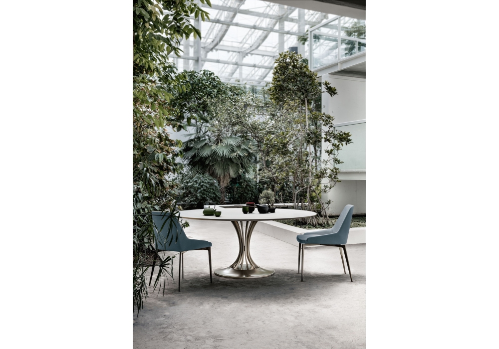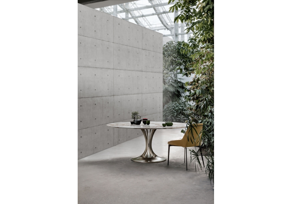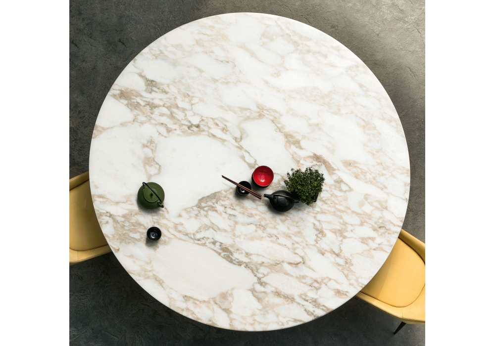 Radar XL conçue par Giuseppe Bavuso pour Alivar est une table composée d'une base en fonte peinte et d'un pied en acier chromé ou peint découpé au laser. Plateau en marbre ou MDF laqué.