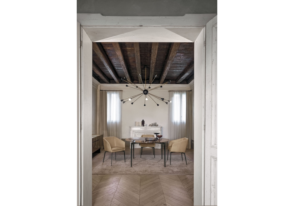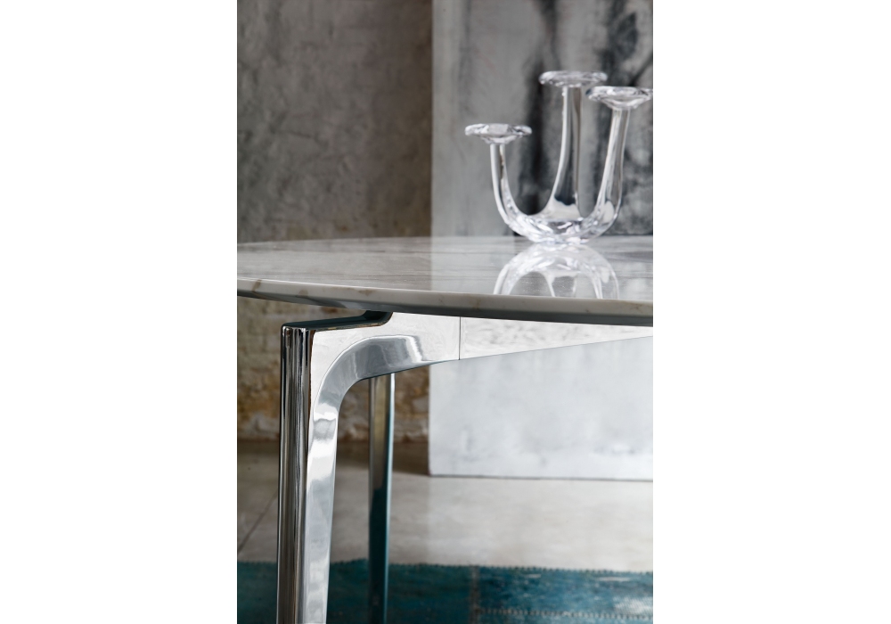 Liuto conçue par Giuseppe Bavuso pour Alivar est une table ronde réalisée avec des pieds en fonte d'aluminium chromé, peint ou nickel noir. Plateau en verre trempé fumé, chêne traité thermiquement ou coins noirs, noyer italien, marbre ou céramique couplé à du verre transparent extra-clair. Disponible en différentes finitions.