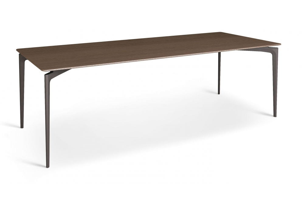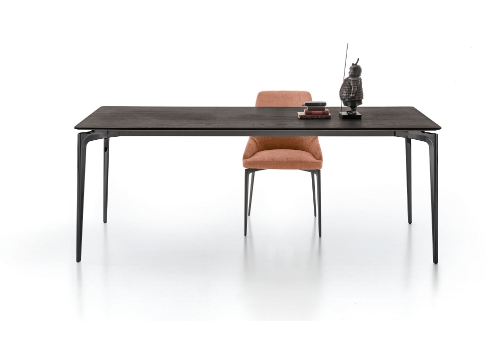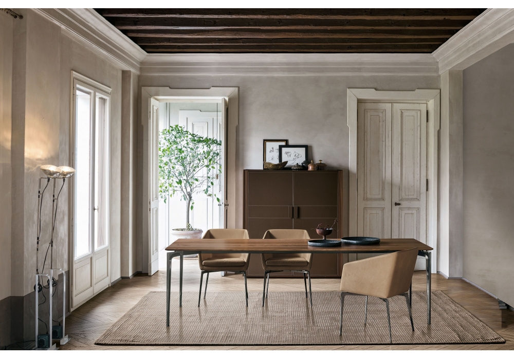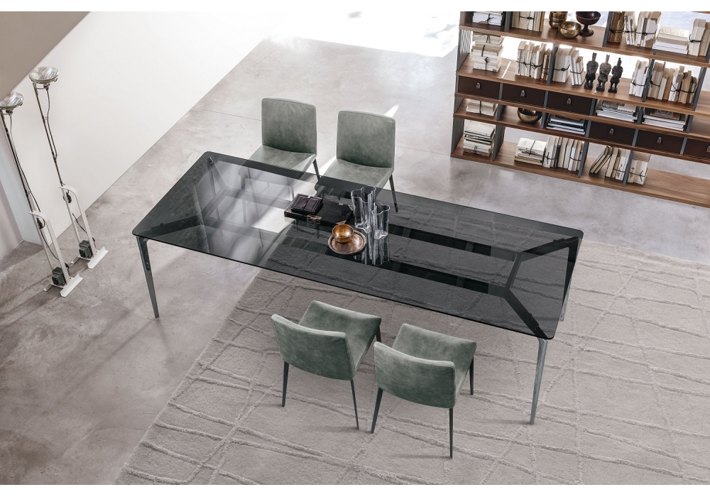 Liuto conçue par Giuseppe Bavuso pour Alivar est une table carrée ou rectangulaire réalisée avec des pieds en fonte d'aluminium chromé, peint ou nickel noir. Plateau en verre trempé fumé, chêne traité thermiquement ou coins noirs, noyer italien, marbre ou céramique couplé à du verre transparent extra-clair. Disponible en différentes finitions et dimensions.